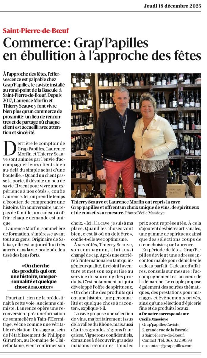 Que vous soyez amateur curieux ou connaisseur exigeant, elle saura vous conseiller et vous accompagner dans vos choix, en toute simplicité. Parlant couramment anglais, elle partage aussi volontiers sa passion avec une clientèle internationale. Chez Grap’papilles, chaque visite devient une parenthèse unique où le goût, l’échange et le plaisir sont à l’honneur.